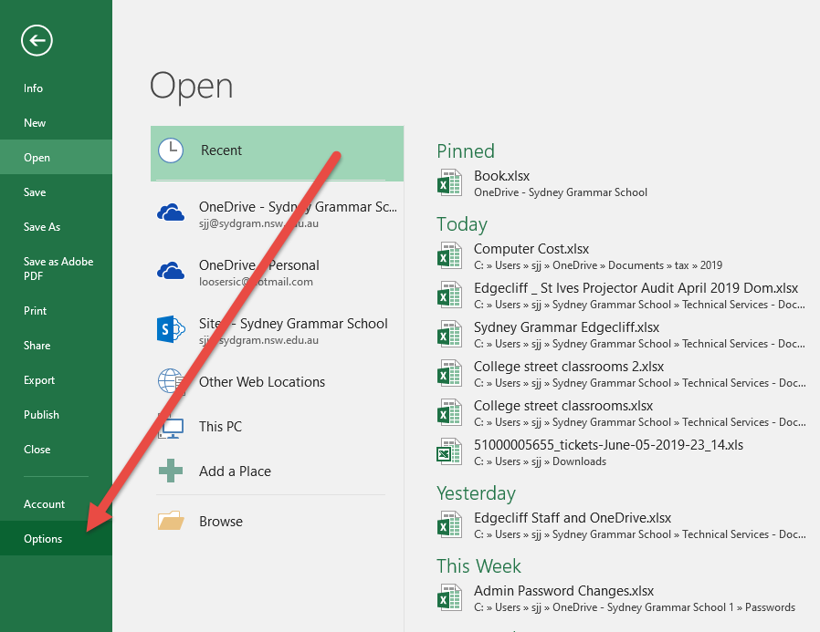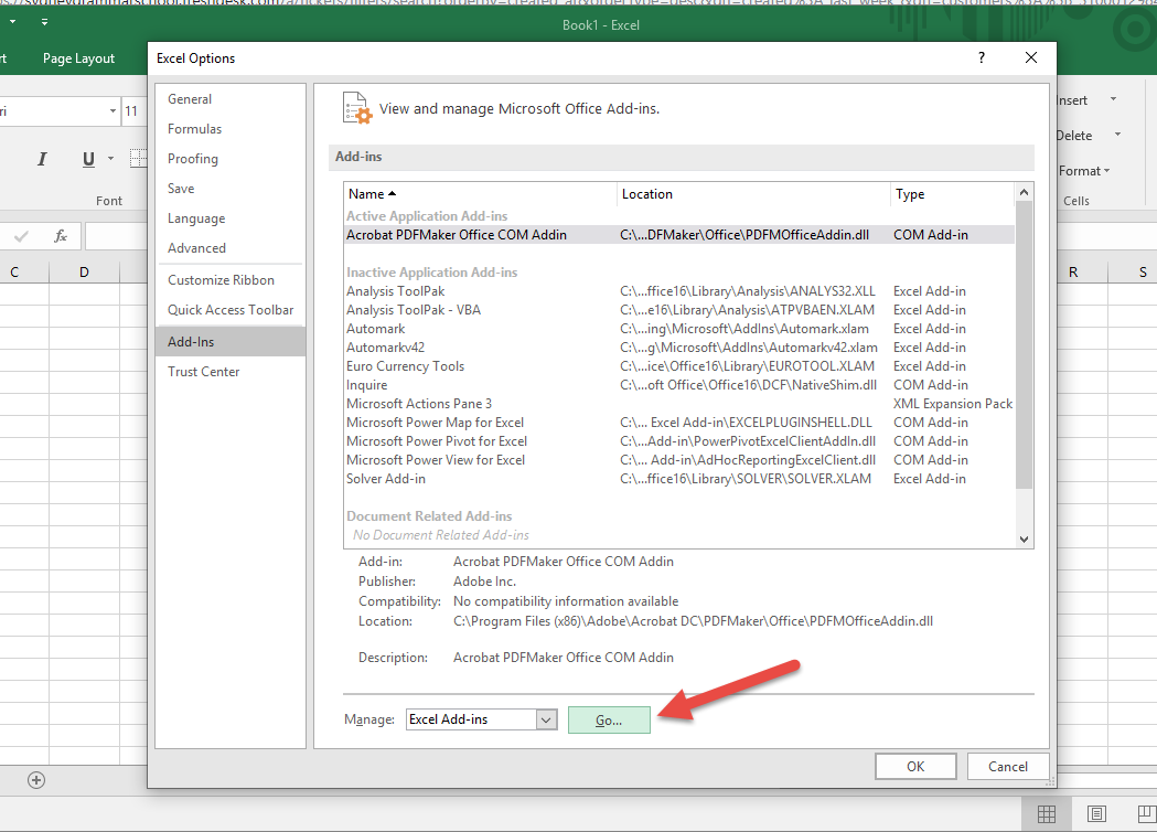 Under Options, select Add-Ins