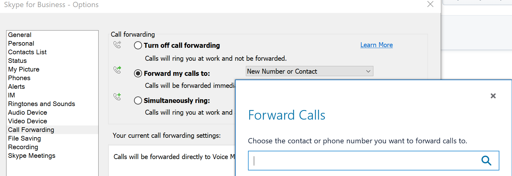 You can do phone forward through the Skype for business app on your device and here is how.