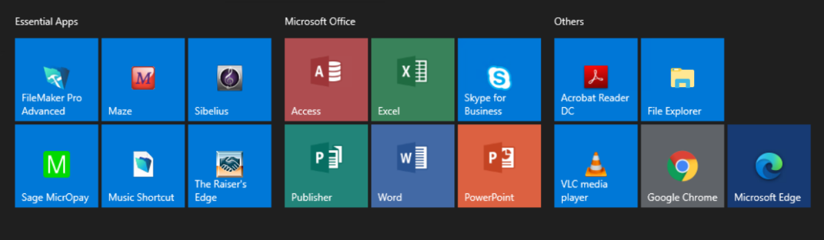 - All essential applications are in the Start Menu