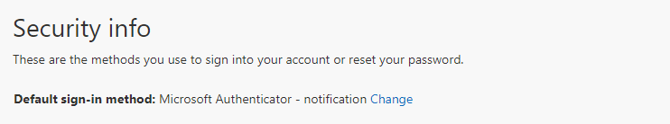 - Under "Security Info", make sure "Microsoft Authenticator - notification" is selected as the default sign-in method.