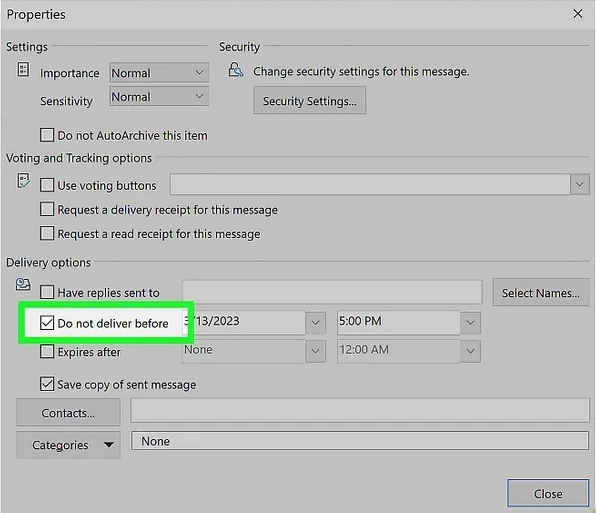E. Click on Do not deliver before