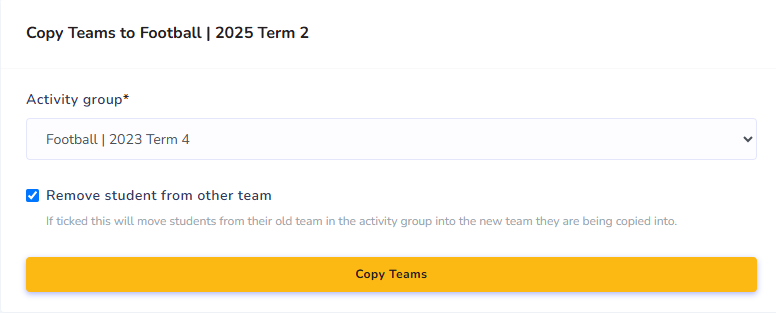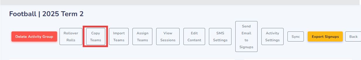 - Select the year and term you would like to copy the team list from, then