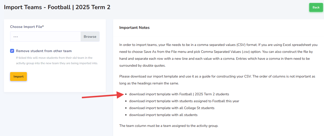 - Choose a template to start your team list "download import template with Football | 2025 Term 2 students"