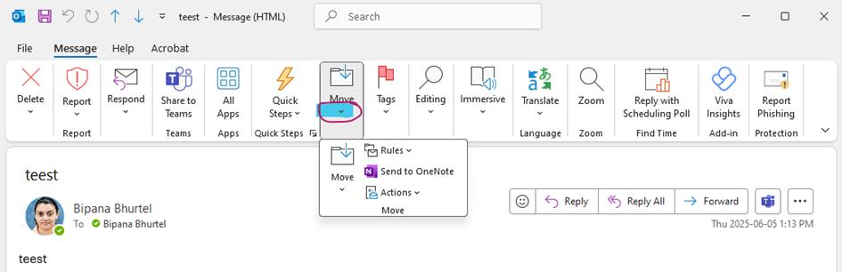 - Click on Move in the ribbon menu