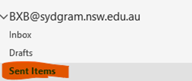 - Click on Sent Items in the left navigation panel