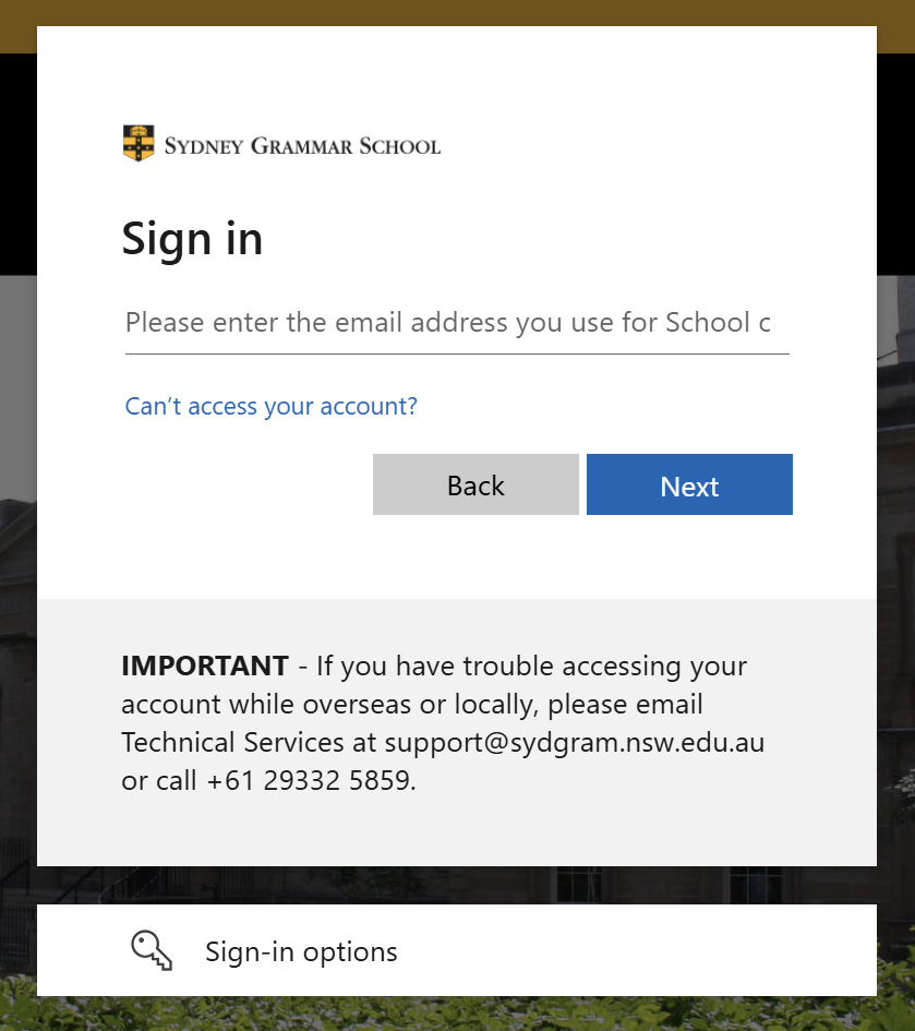 If you experience any issues during the login process, please email support@sydgram.nsw.edu.au and include the following information: